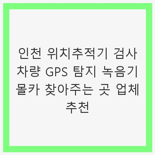 인천에는 위치추적기 검사 서비스를 제공하는 여러 업체가 있습니다. 이들 업체는 전문적인 장비와 경험을 바탕으로 고객의 요구에 맞춘 서비스를 제공합니다. 업체를 선택할 때 고려해야 할 사항은 다음과 같습니다: